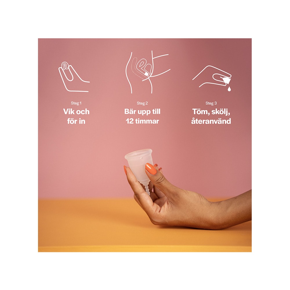 - Praktisk menskopp som ger upp till 12 timmars skydd