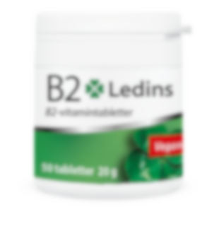 En burk innehåller 50 tabletter och räcker i 50 dagar. Ledins B2 (riboflavin) är ett kosttillskott som bidrar till att minska trötthet och utmattning och bidrar till nervsystemets normala funktion.