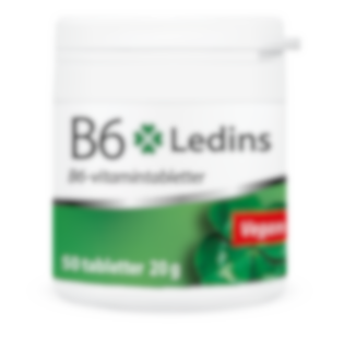 En burk innehåller 50 tabletter och räcker i 50 dagar. Ledins B6 är ett kosttillskott som bidrar till normal protein- och glykogenomsättning och bidrar till immunsystemets normala funktion.