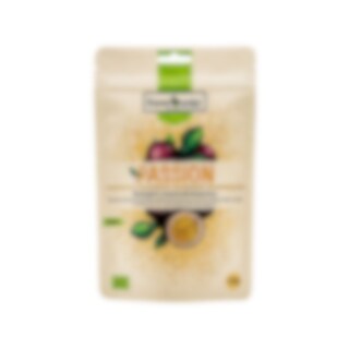 Detta pulver är gjort av frystorkad passionsfrukt och har en syrlig smak med tropisk karaktär. Pulvret framställs från ekologiskt odlade frukter och är helt fritt från tillsatser.