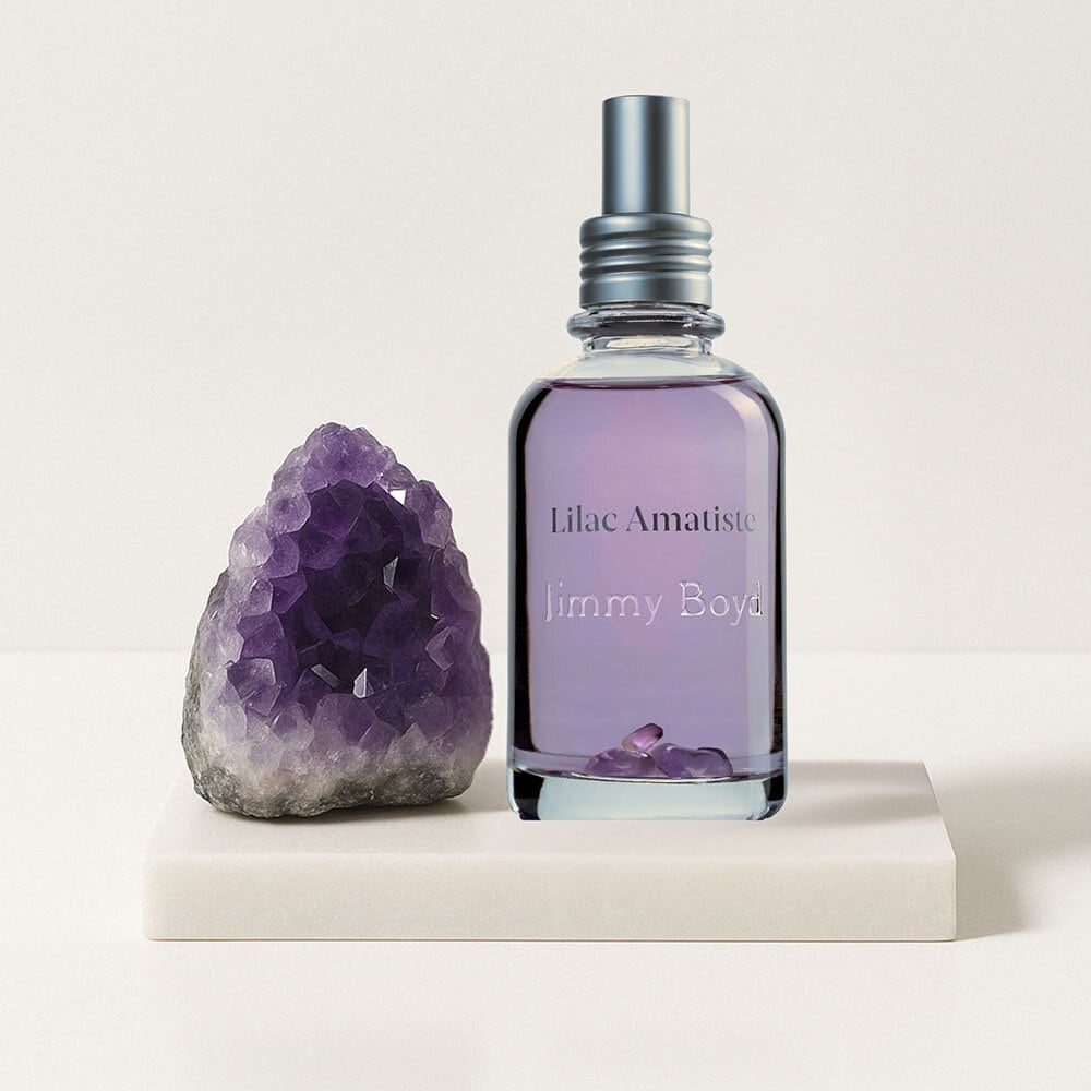 Lilac Amethyst är macererad med ametist – stenen som ofta förknippas med känslomässig balans och inre klarhet. Parfymen fungerar som ett stilla ankare för introspektion, närvaro och vänlig kommunikation.